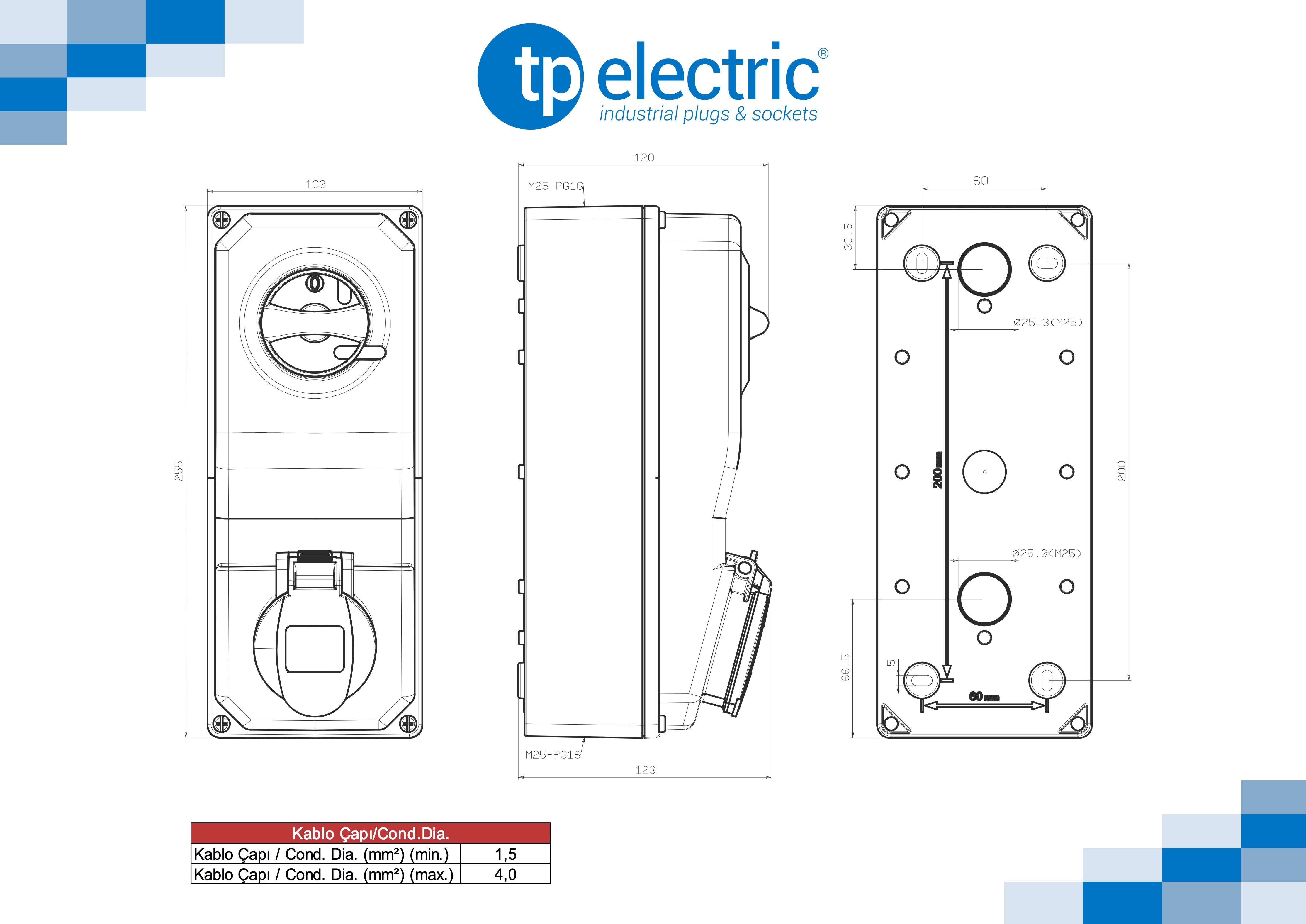 | Größe der vorderen und hinteren Kabelverschraubung; PG 16 und M 25 |