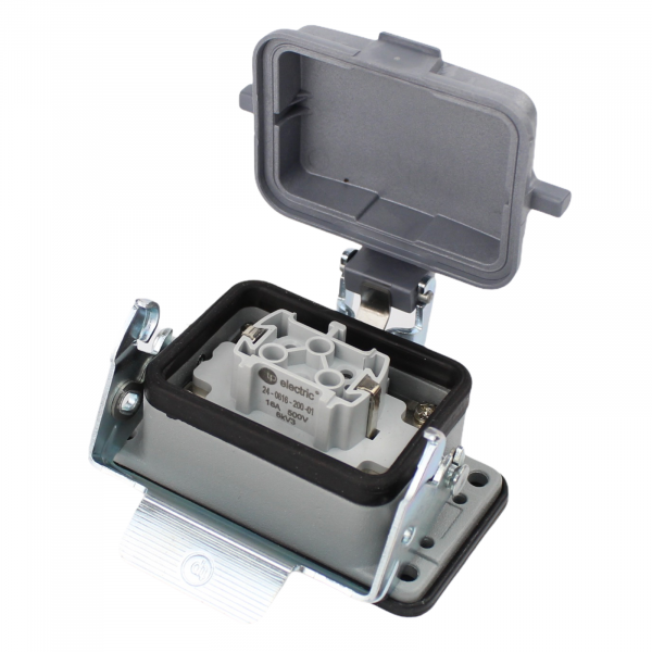 Industriesteckverbinder - Anbaugehäuse mit Deckel + Buchse 6 Polig 16A - Metall