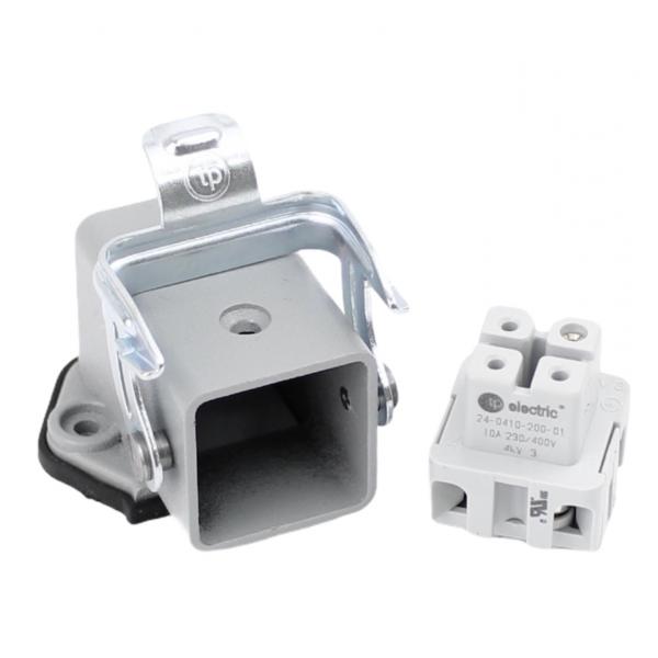 Industriesteckverbinder - Sockelgehäuse gewinkelt + Buchse 4 Polig 10A - Metall