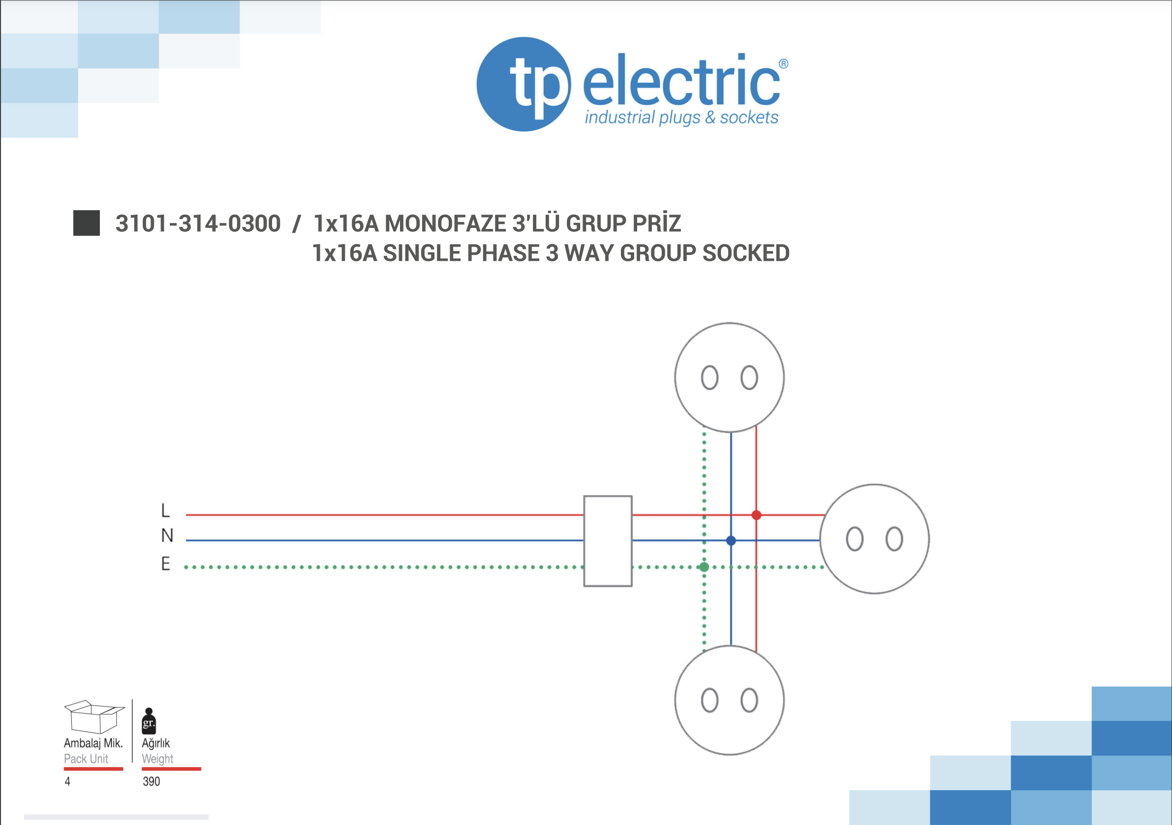 Schutzkontakt 3-Fach Steckdose (Einphasig) IP44
