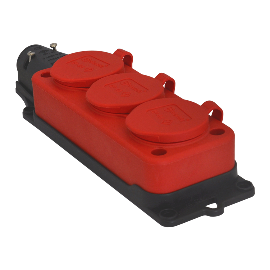 Schutzkontakt 3-Fach Steckdosenleiste IP44 (Rot)